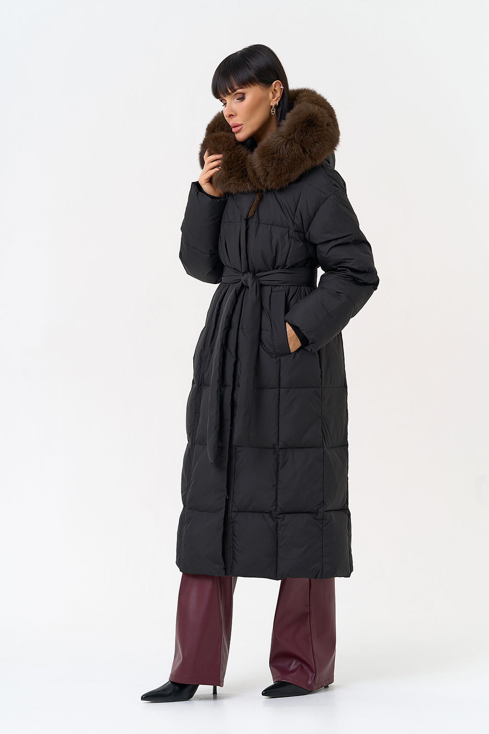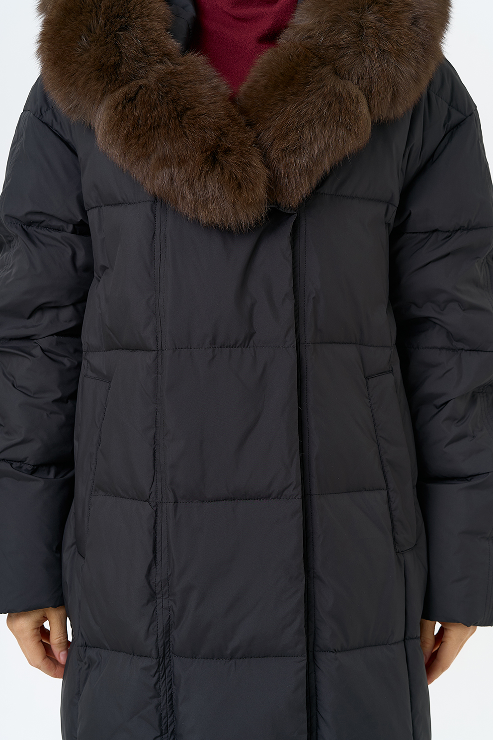 Отделка воротника - песец, цвет коричневый