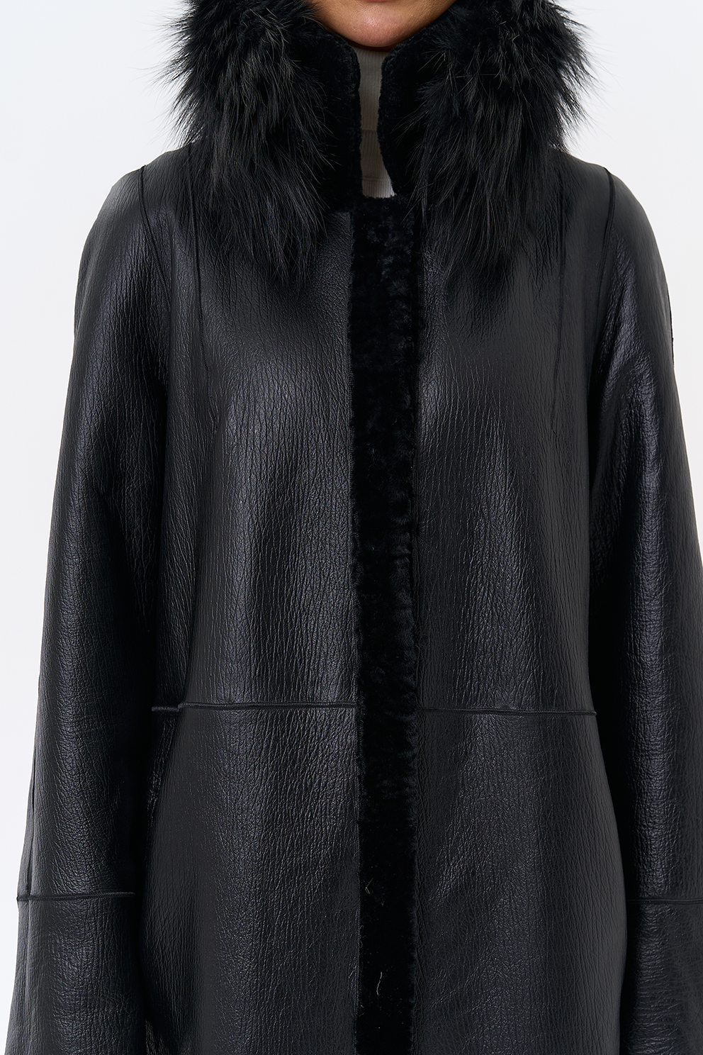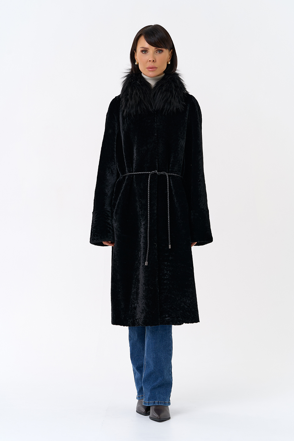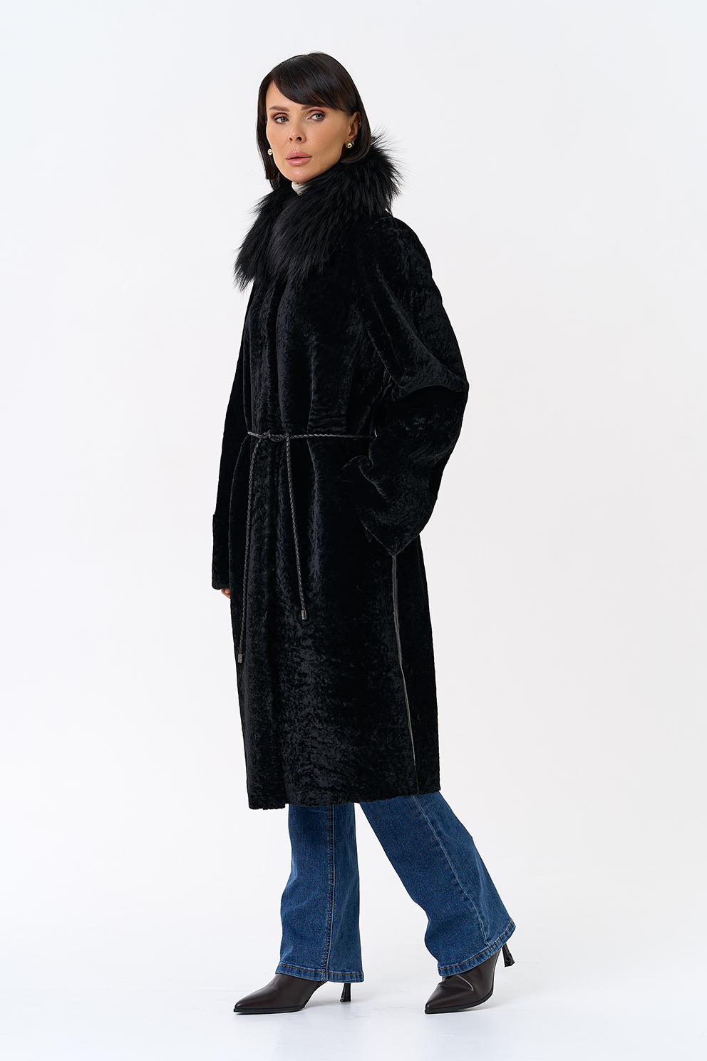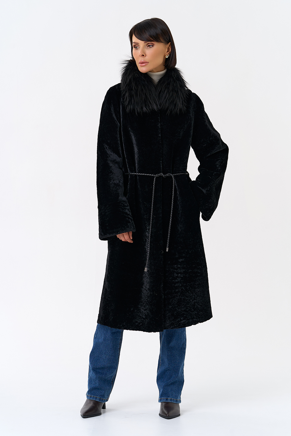 Вид ворота - отложной, отделка чернобурая лиса