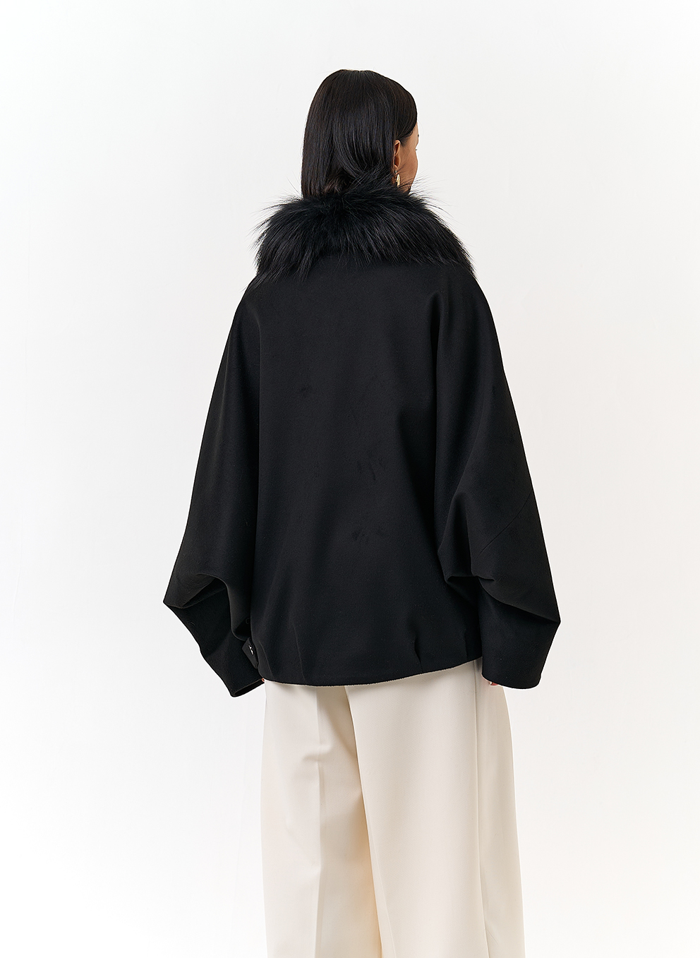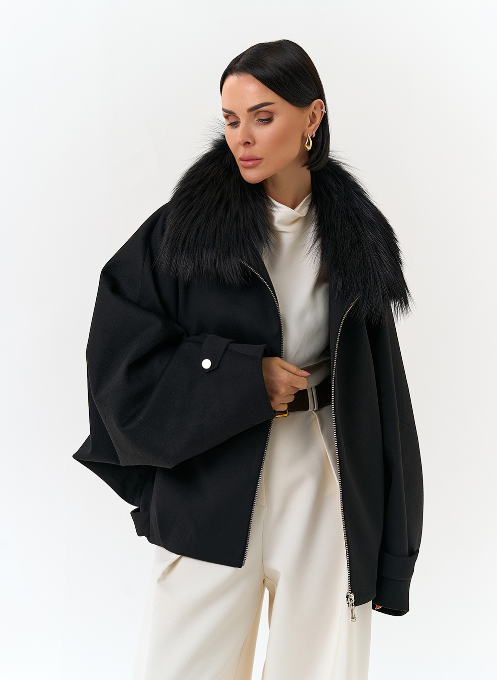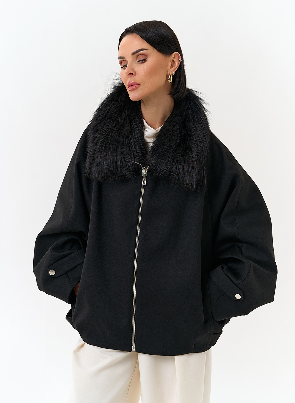 Отделка воротника - мех лисы, цвет черный