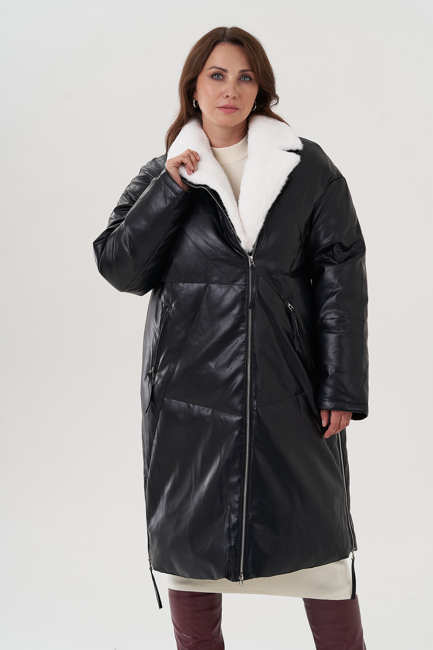 Отделка воротника - искусственный мех, белый