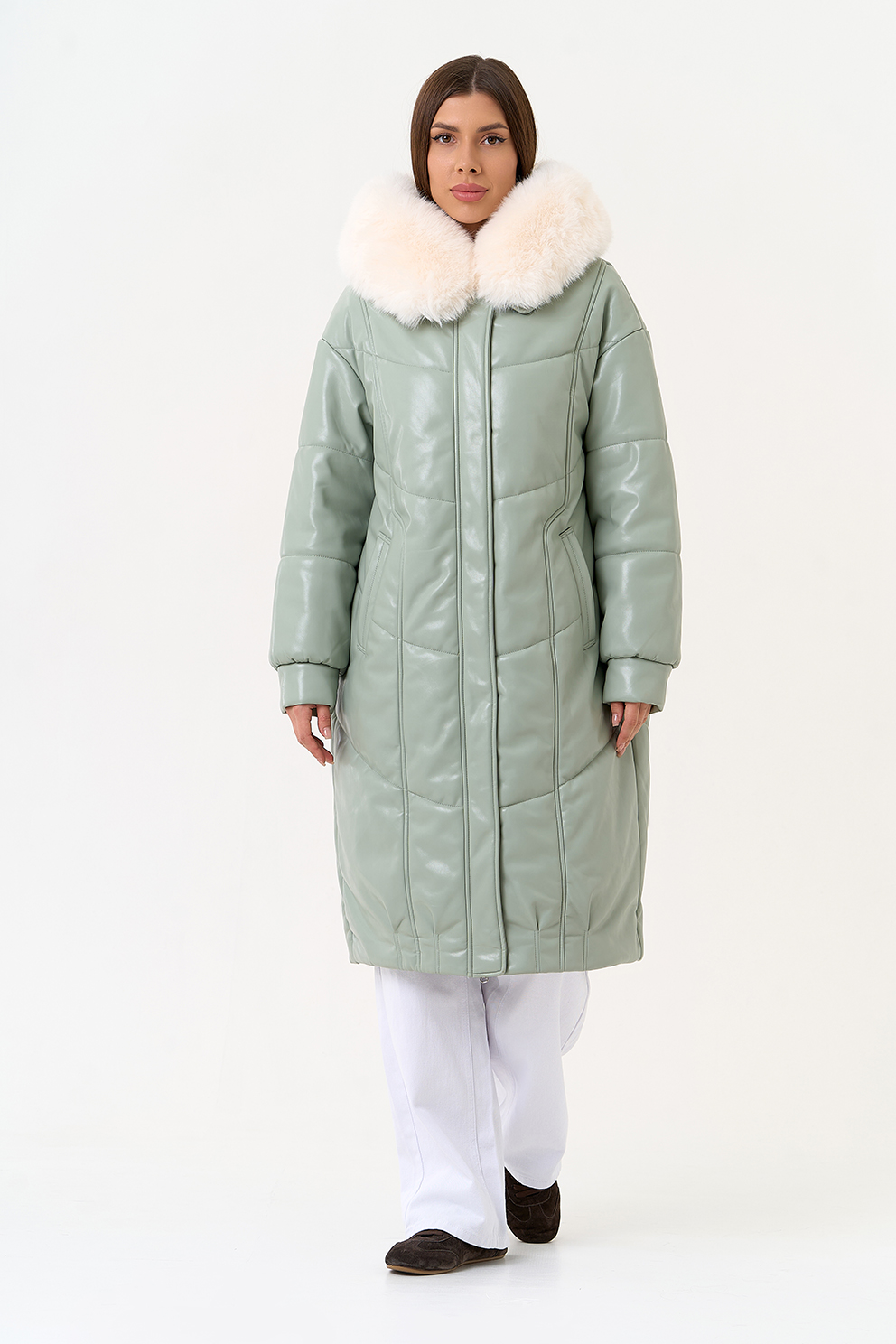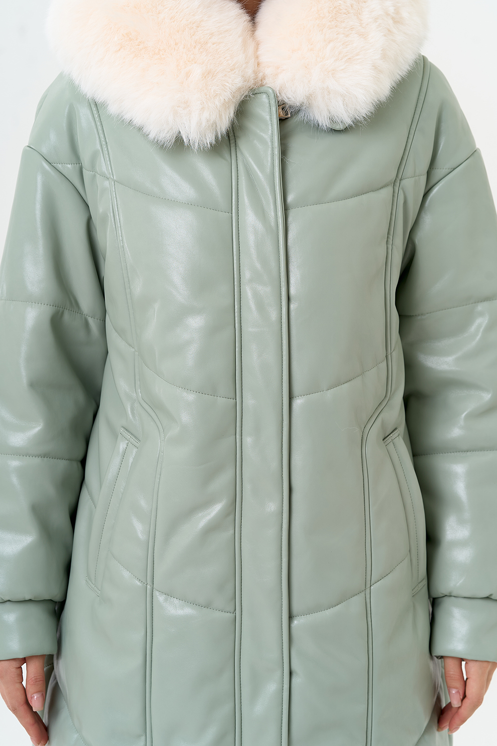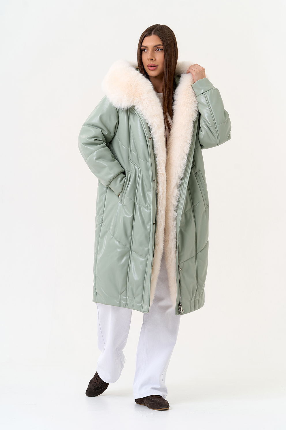 Отделка воротника - эко мех под мех енота, цвет белый
